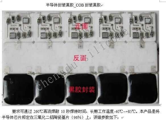 本产品是针对半导体COB封装开发生产的有机硅纳米树脂材料。固化后有一定的弹性,具有耐高低温,在零下50℃/高温260℃范围内长期使用,耐大气老化等特性。本产品的各项技术指标经300℃7天的强化试验后变化小,不龟裂、不硬化。对PPA、PCB线路板、电子元件、ABS、金属、陶瓷有一定的粘接性;附着密封性良好,耐黄变老化性能佳。